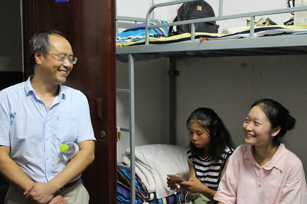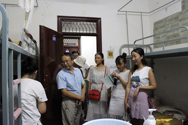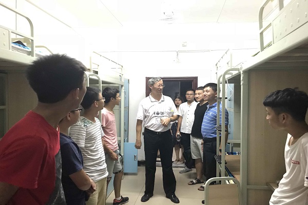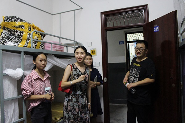 9月1日晚上7点30,院长刘益和、副院长李尧,唐年庆、党总支副书记王瑛杰、学工办老师以及2018级各班班主任一行人又走访看望了新生寝室。