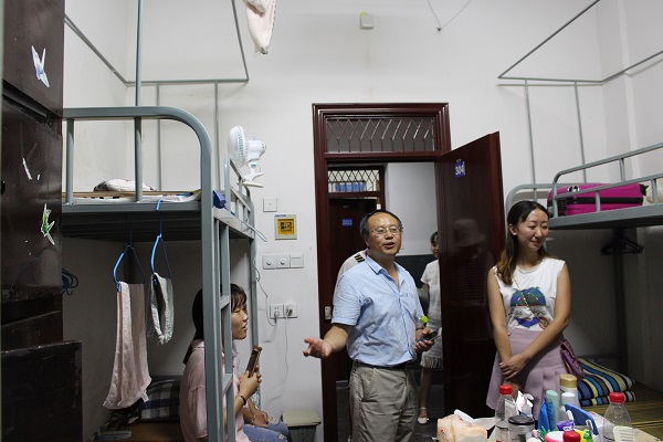 随后,新同学们就寝室问题也提出了意见。他们表示部分寝室没有防蚊纱窗,对7栋的住宿条件和洗澡设施不是很满意。院长一行人对同学们的问题进行了一一解答,表示会尽最大努力为同学们争取到更好的住宿环境。在查寝期间,有几位学生家长因为时间和车票原因,未能及时回家和预定住宿。刘益和院长了解到此情况后,要求班主任助理全力配合帮助学生家长联系住宿。